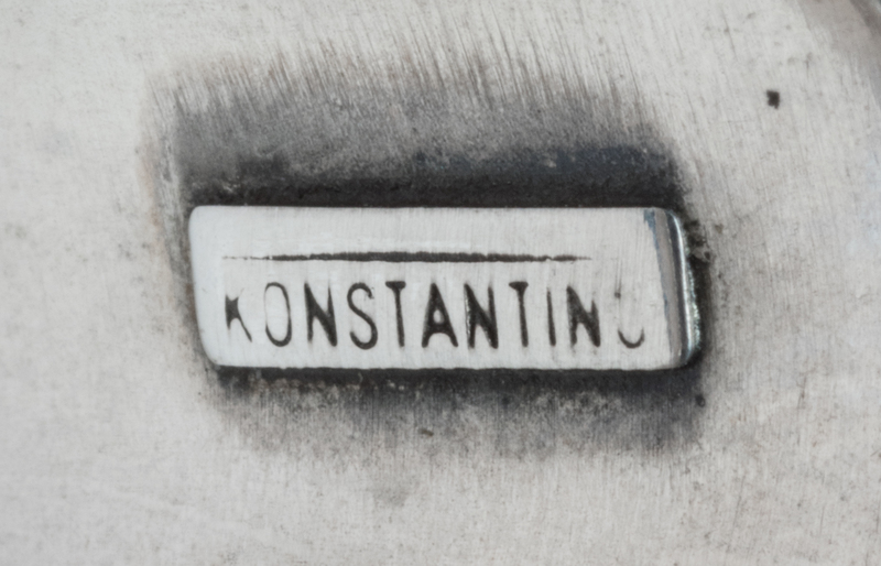 consisting of a central yellow gold Maltese cross design containing 23 round brilliant cut diamonds against a silver acanthus leaf background.Stamp: KONSTANTINO 750 925.
