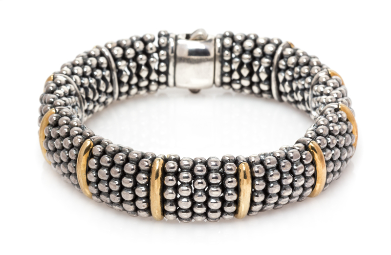 A Sterling Silver and 18 Karat Yellow Gold Beaded 'Caviar' Bracelet, Lagos,
