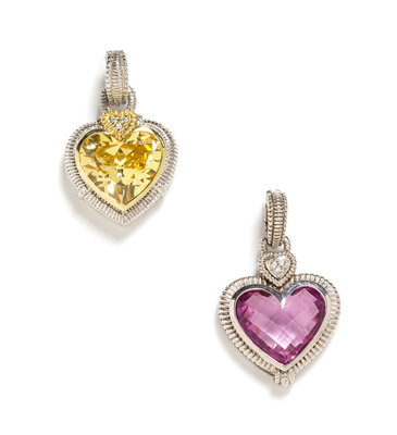 A Collection of Sterling Silver, 18 Karat Yellow Gold, Quartz, Diamond and CZ Heart Pendants, Judith Ripka,