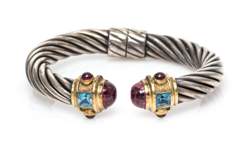 A Sterling Silver, 14 Karat Yellow Gold, Pink Tourmaline, Blue Topaz and Garnet 'Renaissance' Bracelet, David Yurman,