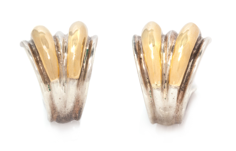 A Pair of Sterling Silver and Yellow Gold Earclips, Lalaounis,