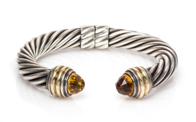 A Sterling Silver, 14 Karat Yellow Gold and Citrine 'Cable Classics' Bracelet, David Yurman,