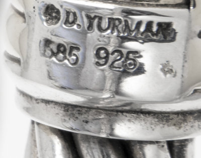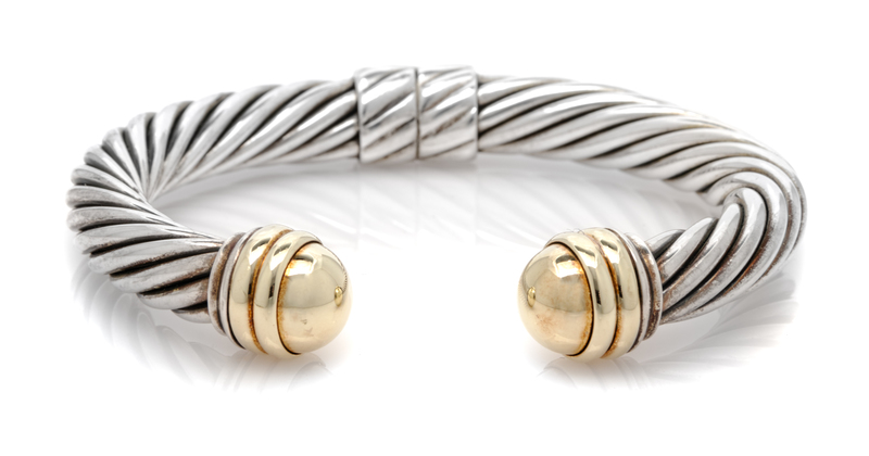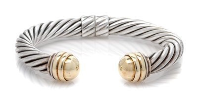 consisting of a cable measuring approximately 10.00 mm wide, with gold finials and a hinge.Stamp: D.YURMAN 585 925.