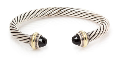 A Sterling Silver, 14 Karat Yellow Gold and Onyx 'Cable Classics' Bracelet, David Yurman,