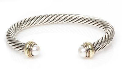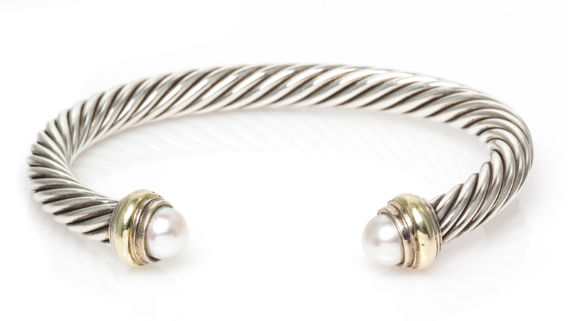A Sterling Silver, 14 Karat Yellow Gold and Cultured Pearl 'Cable Classics' Bracelet, David Yurman,