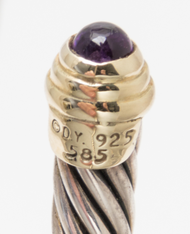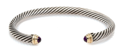 A Sterling Silver, 14 Karat Yellow Gold and Amethyst 'Cable Classics' Bangle Bracelet, David Yurman,