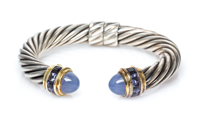 A Sterling Silver, 14 Karat Yellow Gold, Blue Chalcedony and Iolite 'Cable Classics' Bracelet, David Yurman,