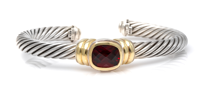 A Sterling Silver, 14 Karat Yellow Gold and Garnet 'Noblesse' Cuff Bracelet, David Yurman,