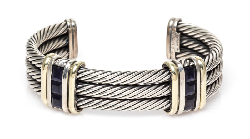A Sterling Silver, 14 Karat Yellow Gold and Iolite Bracelet, David Yurman,