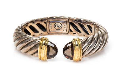 A Sterling Silver, 18 Karat Yellow Gold and Smoky Quartz 'Waverly' Bracelet, David Yurman,