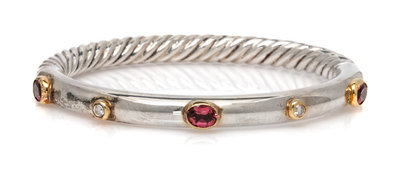 A Sterling Silver, 18 Karat Yellow Gold, Pink Tourmaline and Diamond 'Cable' Bangle Bracelet, David Yurman,