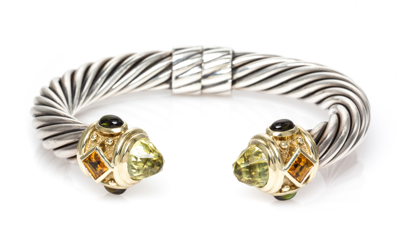 A Sterling Silver, 14 Karat Yellow Gold, Lemon Citrine, Citrine and Green Tourmaline 'Renaissance' Bracelet, David Yurman,