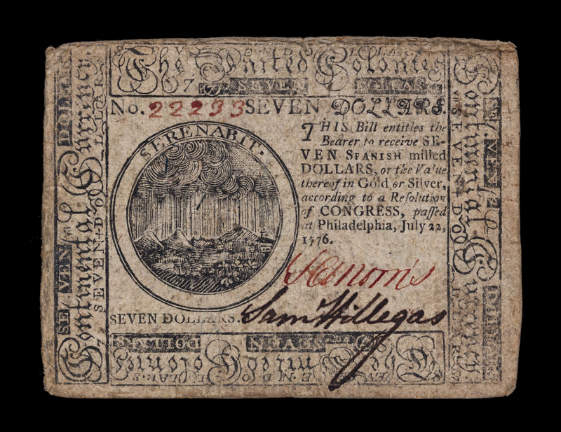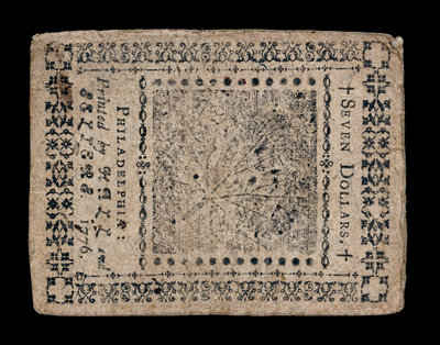 An American Continental Congress 7/22/1776 Seven-Dollar Note