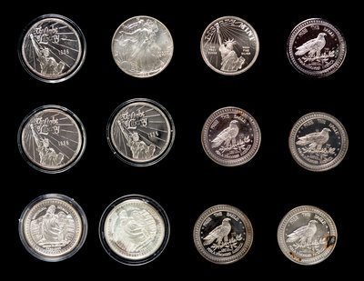comprising a 1992 Silver eagle and 13 third-party one ounce rounds.