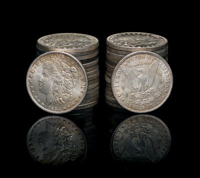A Group of Thirty-Two United States Morgan Silver Dollar Coins