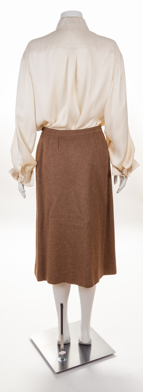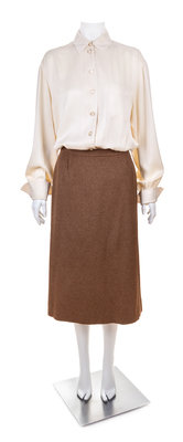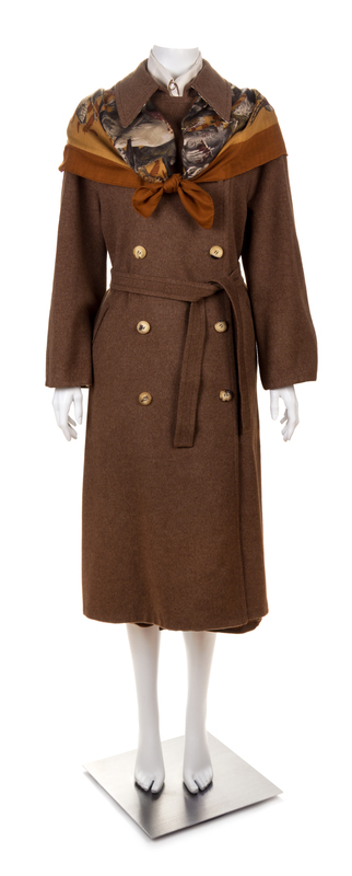 An Herms Vintage Brown Wool Cashmere and Silk Reversible Coat and Skirt Ensemble,