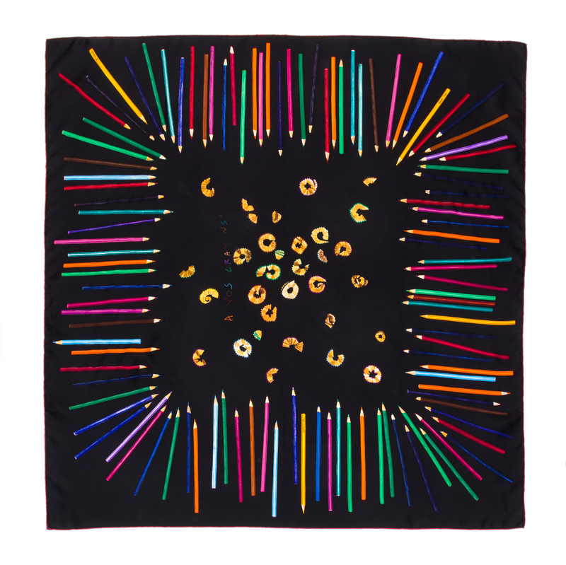 "A Vos Crayons" pattern, designed by Leigh P. Cooke. Together with a box.Labeled within the print: Herms.