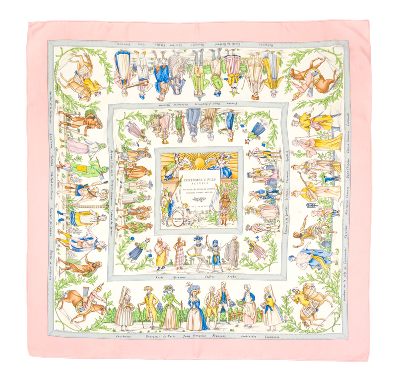"Costumes Civils Actuels" pattern, designed by Franoise de la Perriere. Labeled within the print: Herms.