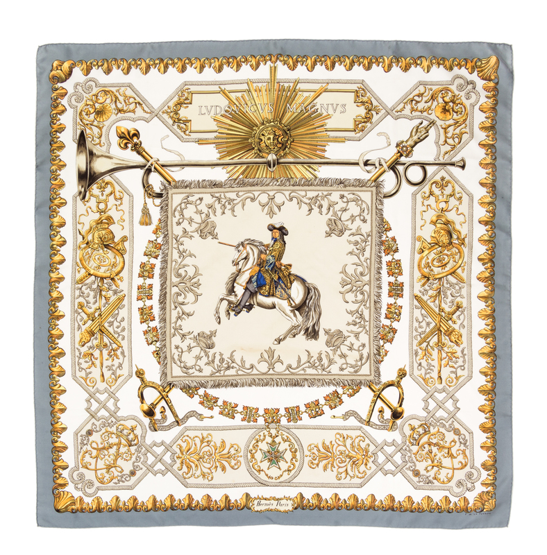 "Ludovicus Magnus" pattern, designed by Franoise de la Perriere. Together with a box.Labeled within the print: Herms.