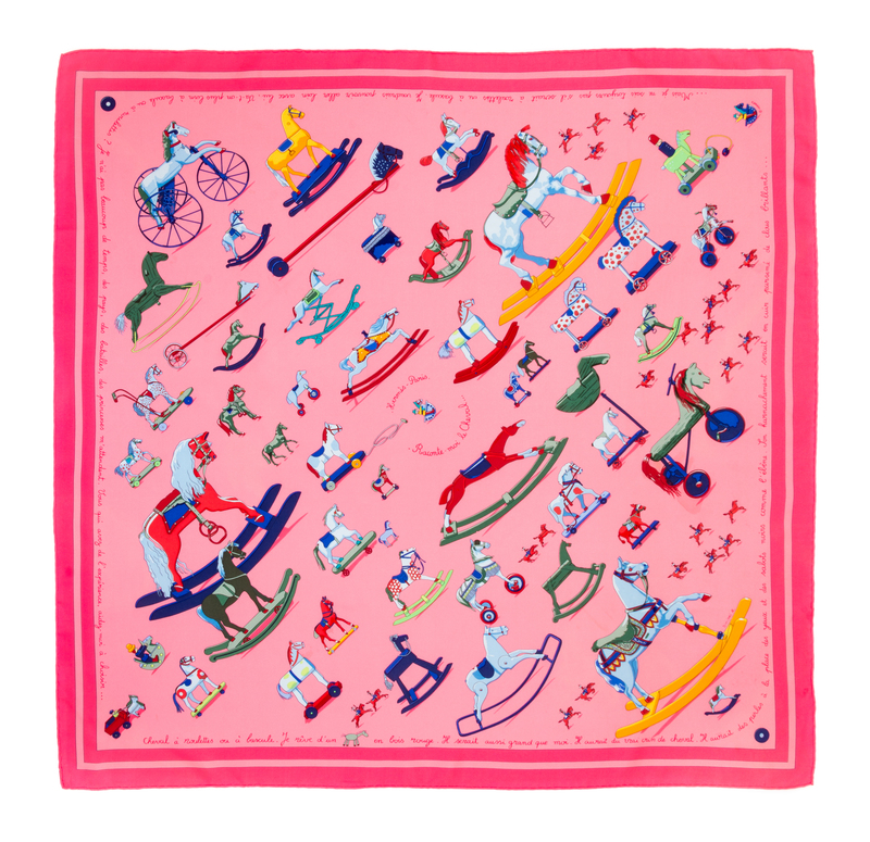 "Raconte-moi le Cheval" pattern, designed by Dimitri Rybaltchenko. Together with a box.Labeled within the print: Herms.