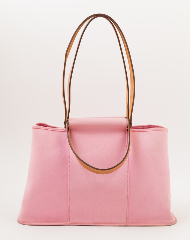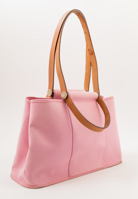 An Herms Pink Toile Canvas Cabag Tote,