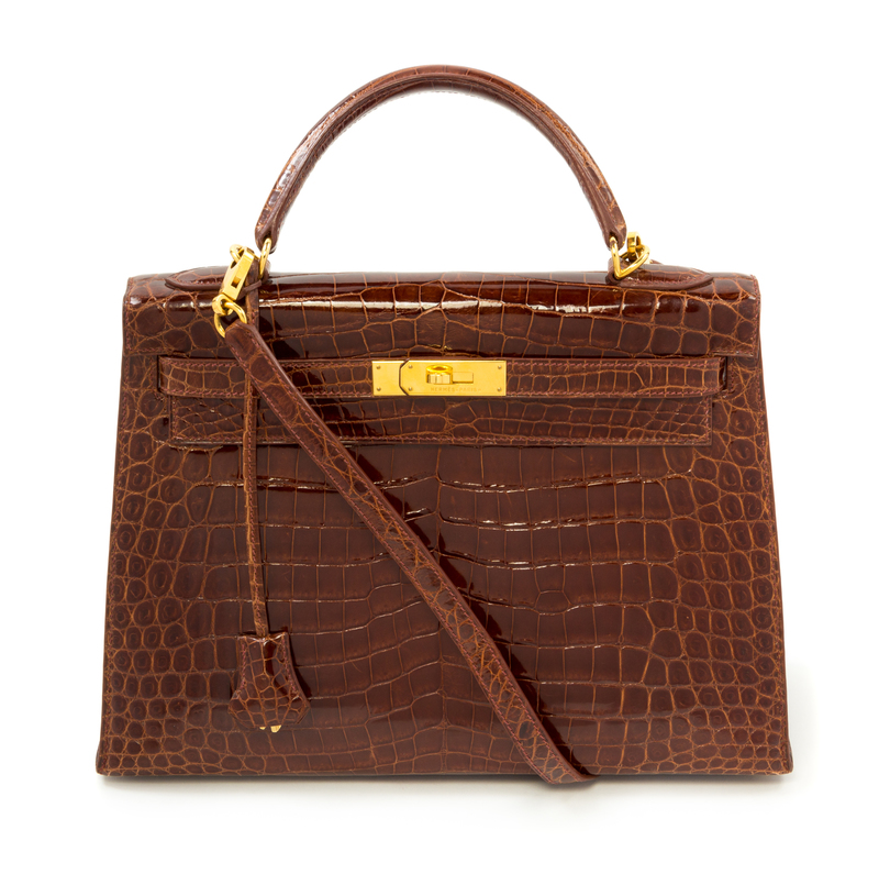 An Herms Brown Niloticus Crocodile Sellier 32cm Kelly Handbag,