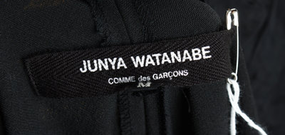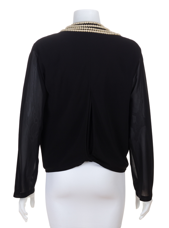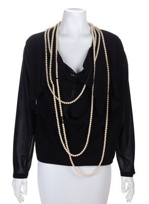 Fall/Winter 2000,with an open neckline, four attached varied length strands of pearls, sheer sleeves and a slit opening at the lower back.Labeled: Junya Wantanabe.