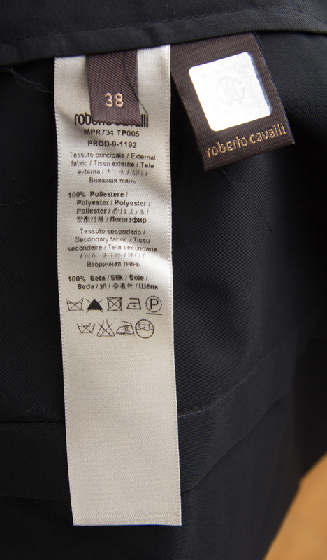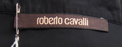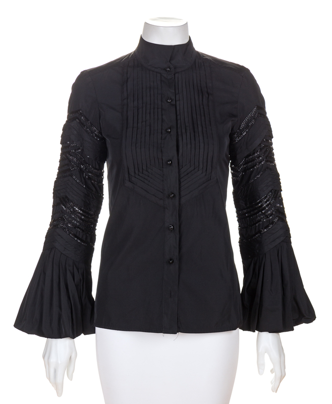with a decorative pleated yoke, decorative pleat and embellished sleeves and front button closure.Labeled: Roberto Cavalli.