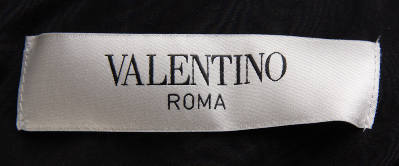 with three quarter inverted pleat sleeves, a V-neckline and a decorative attached half-belt with snap closure at the front waist. Labeled: Valentino.