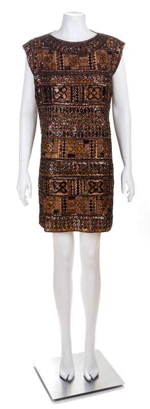 An Yves Saint Laurent Brown Heavily Beaded and Sequin Embroidered Shift Dress,