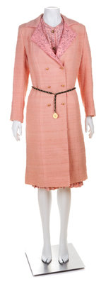 A Chanel Pink Silk Dress and Tweed Coat Ensemble,