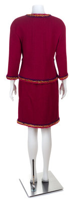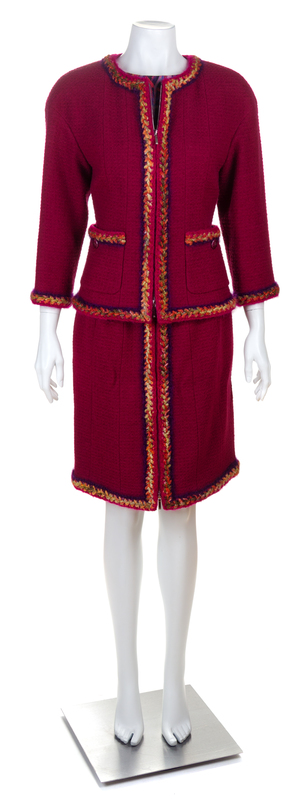 A Chanel Raspberry Wool Boucle Skirt Suit Ensemble,