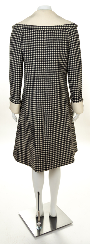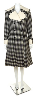 A Geoffrey Beene Black and Cream Wool Double Breasted Check Coat,