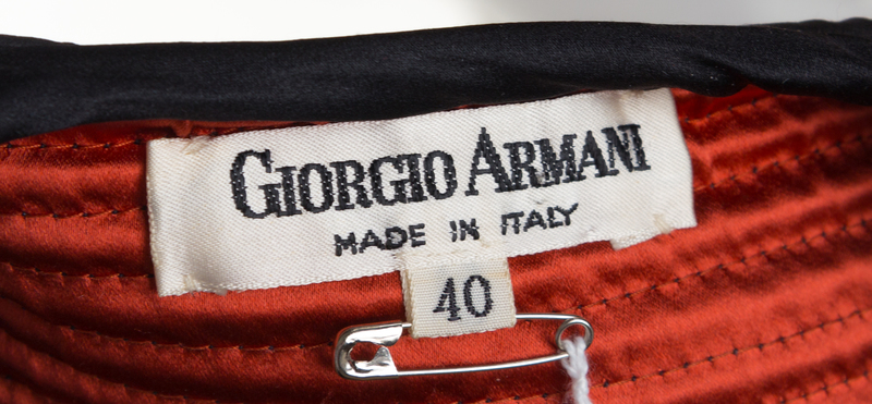 Fall/Winter 1982-1983,with a narrow plunge neckline, a decorative silk ribbed bodice, velvet fitted long sleeves, shoulder pads and a left side zip closure.Labeled: Giorgio Armani.