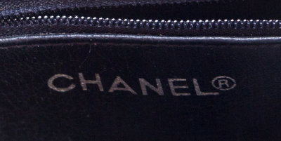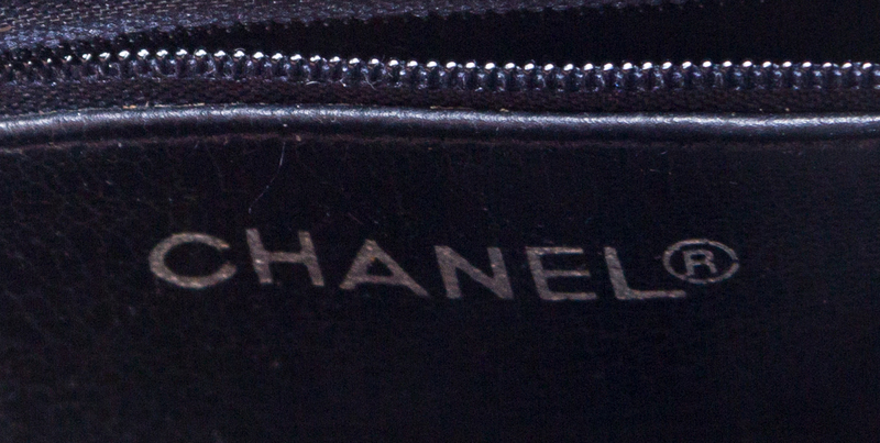 with goldtone hardware, double chain shoulder straps, two exterior pockets and two interior zip pockets.Stamped: Chanel.