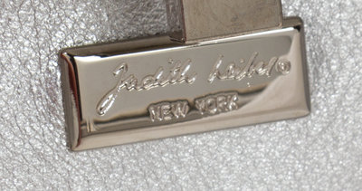 with a silvertone frame, a decorative top push lock closure and an optional silvertone shoulder strap. Together with a dust bag.Stamped: Judith Leiber.