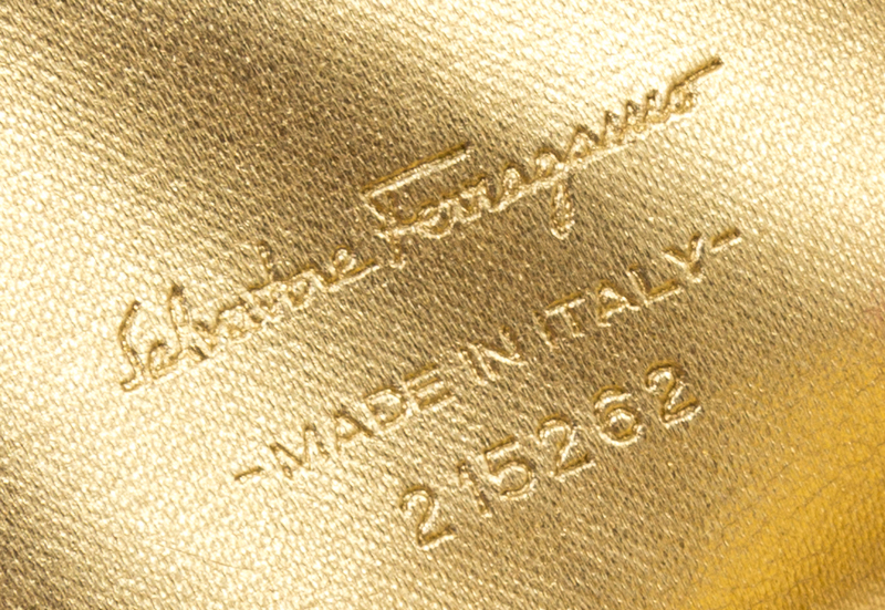 with goldtone hardware, a decorative front snap closure and interchangeable cream and black silk inserts. Together with a dust bag.Stamped: Salvatore Ferragamo.