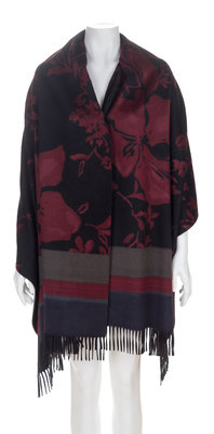 A Loro Piana Black and Burgundy Cashmere Oblong Floral Wrap,
