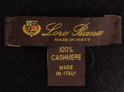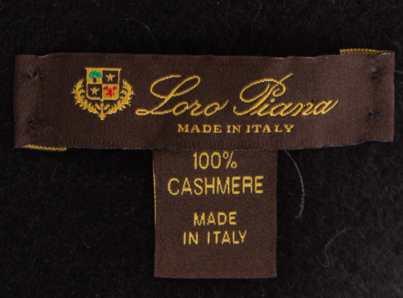 with fringe trim and black cashmere on the reverse side.Labeled: Loro Piana.