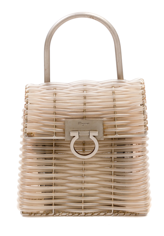 A Salvatore Ferragamo Gancini Plastic Weave Handbag,