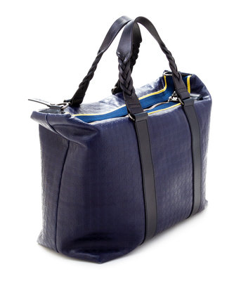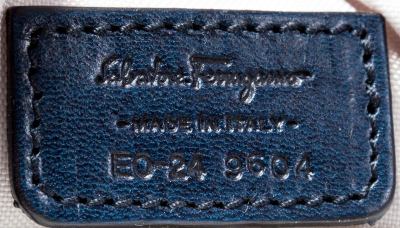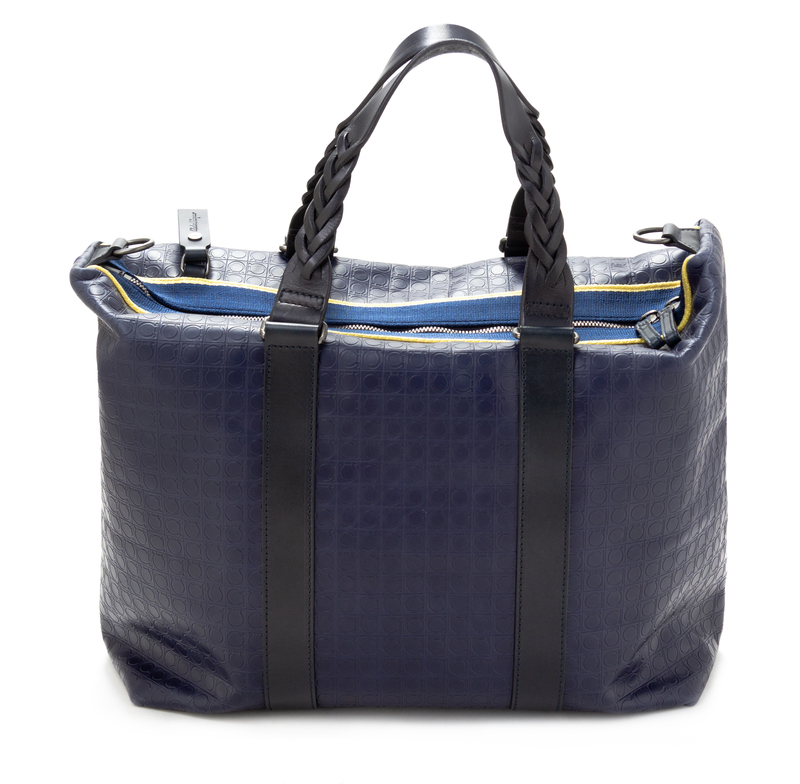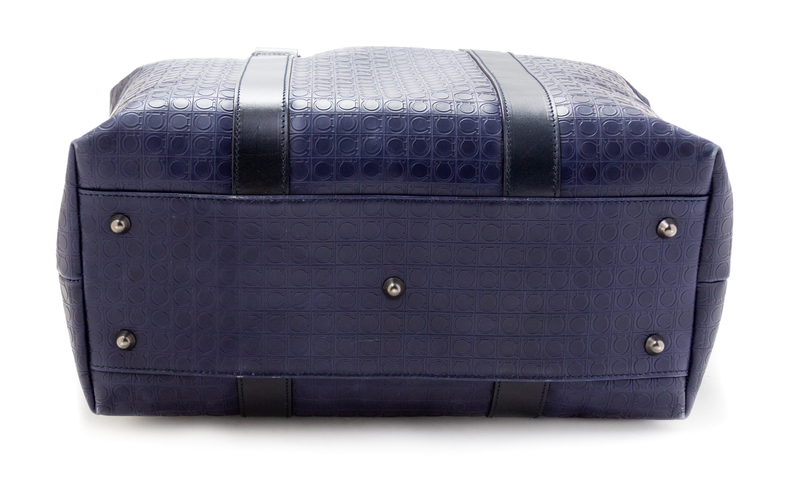 A Salvatore Ferragamo Navy Logo Embossed Leather Tote Bag,