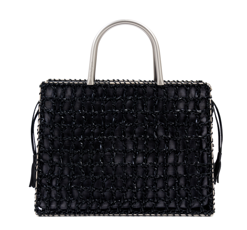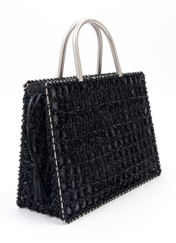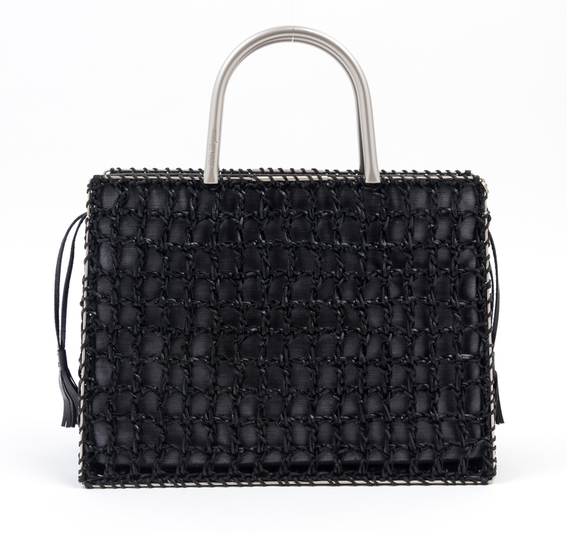 A Salvatore Ferragamo Black Leather Basket Weave Tote,