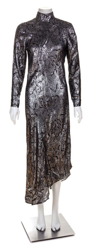 A Jean-Louis Scherrer Metallic Silk and Lurex Snakeskin Print Gown,