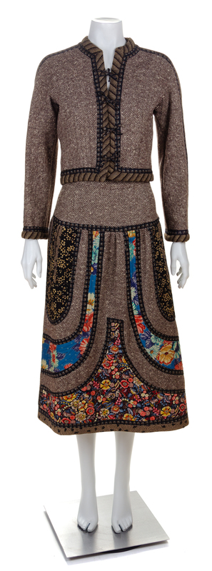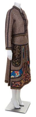 A Koos van den Akker Brown Tweed Jacket and Skirt Ensemble,