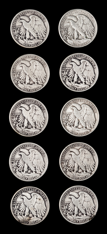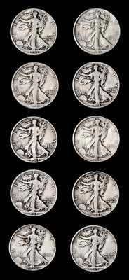 A Collection of Twenty-Eight United States Walking Liberty 50c Coins