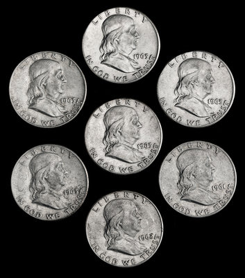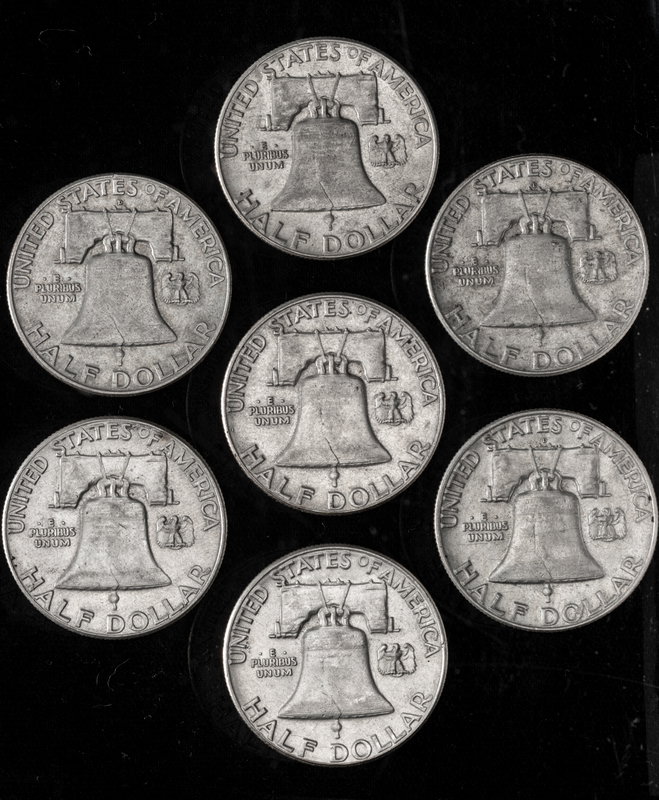 A Collection of Seven United States Benjamin Franklin 50C Coins