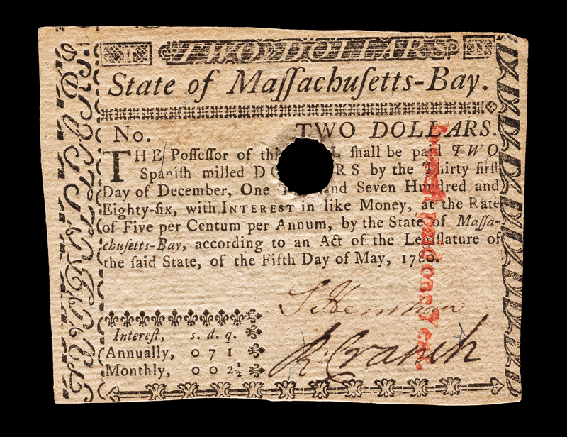 A State of Massachusetts 5/5/1780 $2 Note