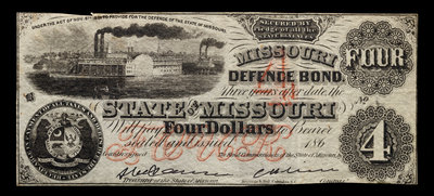 A State of Missouri 1861 $4 Defence Bond