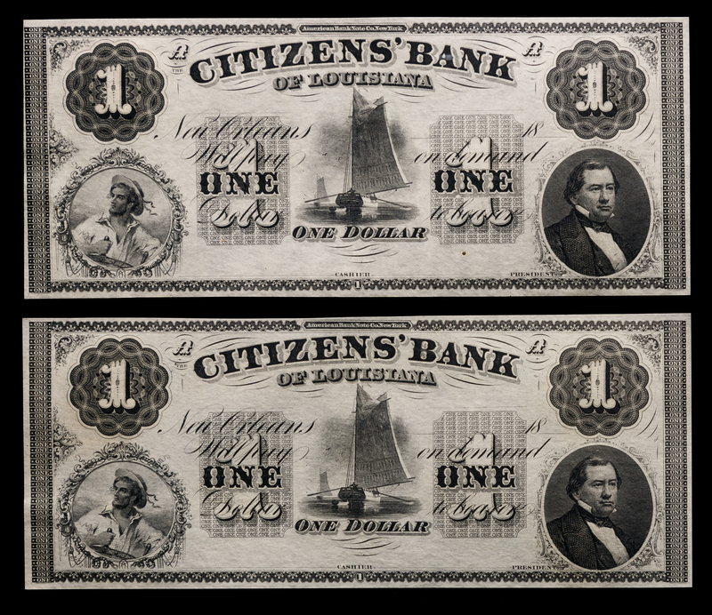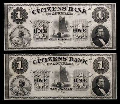 Two Obsolete $1 Bank Notes: Citizens' Bank of Louisiana