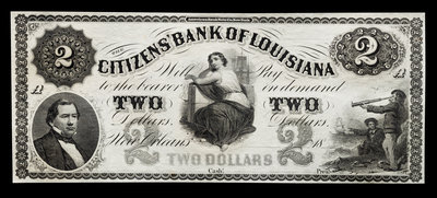Obsolete $2 Bank Note: Citizens' Bank of Louisiana